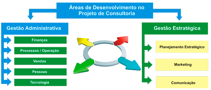 Projetos de Consultoria com formato e duração flexíveis, atendimento pontual e contínuo, visando tanto o apoio ao empresário, como à elaboração e execução do plano de negócio por área da empresa.